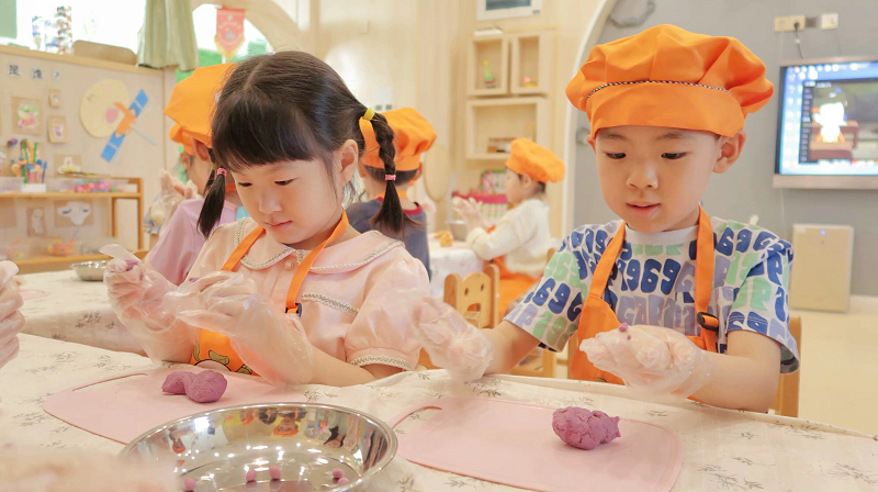 科创日活动。 美食日,小小的双手将普通的原料变成了令人垂涎欲滴的美食,那一个个专注的眼神,一张张沾满面粉却无比快乐的笑脸,是这一天最美的风景,他们体验着劳动的快乐,感受着创造美食的成就感。