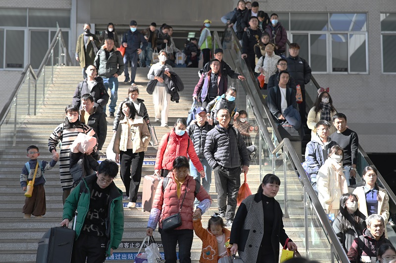在福州火车站,旅客走下楼梯进入站台准备登车。邹海杰 摄 今日福州火车站预计发送旅客约11.5万人次。西南地区的达州、重庆、成都、贵阳、南充、万州等地仍是旅客出行的集中方向。此外,武汉、郑州、洛阳、长沙、青岛、南昌等地的客流也相对较大。 截至目前,往云、贵、川、豫等方向车票已基本售完;往北、上、广、深、沪等方向有少量余票;往省内各短途城市车票还有剩余。