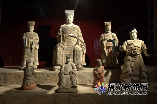 观音阁。 出土神像神态逼真 栩栩如生 来到显应宫,最值得一提的是地下古宫。从钟楼阁楼式的通口顺阶而下,便可进入地下古宫观瞻。进入前殿大门,左边为妈祖神龛,右边为巡海大臣神龛。后殿正厅祀当地守境大王神祗,左偏殿为医药神祗,右偏殿为临水夫人。各尊神像神态逼真,栩栩如生。 经文物专家考证,显应宫已有880多年历史。据《长乐县志》记载,显应宫曾被列为县内十五都的名胜古迹。当时显应宫俗称大王宫,因偏殿祀有妈祖神像,又称天妃宫。出土泥塑神像历经宋元明三个朝代,香火鼎盛不衰。