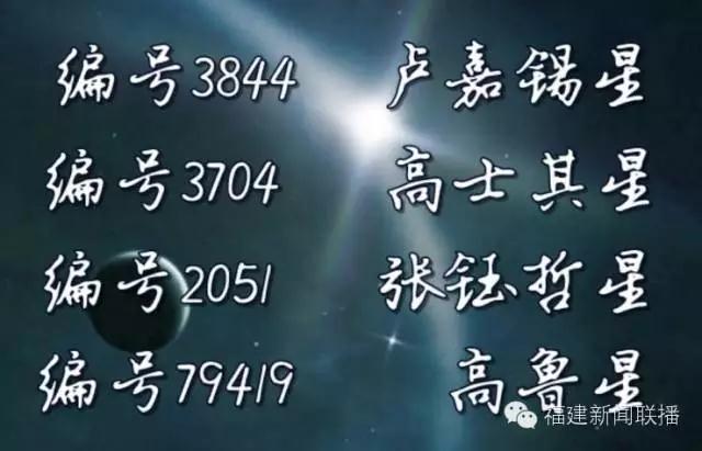 吴其瑾。图片来源:海峡网 把自己的名字留在天上,这样浪漫的事还发生在他们的身上。 2011年,国际小行星命名委员会决定将26323号小行星命名为“吴其瑾星”,而吴其瑾是一位来自福州的17岁女孩。吴其瑾之所以能够获此殊荣,是为了表彰她代表中国参加2010年英特尔国际科学与工程大奖赛并获得个人二等奖的荣誉。 刘啸峰星 此前,福州一位男生也获得过小行星命名权。2004年,福州一中学生刘啸峰在英特尔国际科学与工程大奖赛决赛中获得二等奖。次年,国际小行星命名委员会将由麻省理工学院林肯实验室发现的小行星(编号为20817)命名为“刘啸峰星”。 此外,为了表彰对航天事业的贡献,陈建生、张钰哲、高鲁、王绶琯等来自福州的航天人也在太空中留下了自己闪亮的名字。