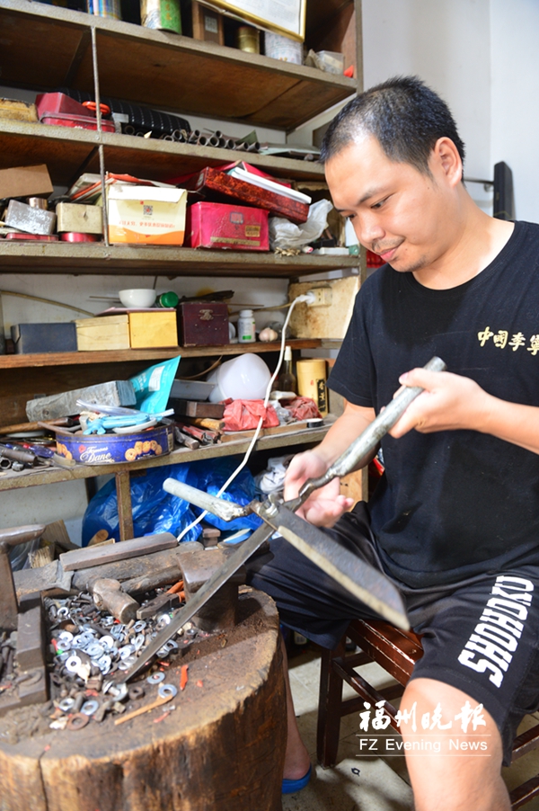 郑力立在制作剪刀。 福州晚报记者 蓝秀楠/文 叶诚/摄 郑力立是市级非遗项目“郑兴利剪刀”制作技艺第五代传人,如何让老手艺焕发新光彩,是他一直在思考的问题。近日,记者在位于台江区长乐南路的“郑兴利剪刀”店采访了他。 “郑兴利剪刀”起源于福州“剪刀之乡”横屿,这里生产的剪刀被称为“福剪”,郑兴利曾被称为“福剪状元”。 今年37岁的郑力立学习手工制作剪刀已有20多年。“八九岁我就看家里人打制剪刀,14岁正式学艺。”郑力立从小跟着爷爷郑德官、父亲郑隆新学艺,渐渐迷上了这项对精准度、火候要求极高的制作工艺。 “多一分火,少一分火,钢材薄厚相差丝毫,都会带来不同的效果。”郑力立说,制作剪刀要严格遵循最佳比配走流程,还要思考剪刀的造型,经过数小时的磨砺锻打,才能制成一把好剪刀。 郑力立说,店铺始终奉行“以诚为本,以质取胜”的经营宗旨,赢得了“一把郑兴利剪刀能用一辈子”的口碑。 据了解,“郑兴利剪刀”制作技艺最大的特色在于“夹钢”技术和剪刀制作的最佳角度和温度。“‘夹钢’就是将上等钢材与普通钢材结合在一起的一种制作手法。”郑力立说,“夹钢”需要把两片烧红的钢材在高温时锻打熔合到一起,将厚度锻打至1毫米左右。 “这样手工打制的刀刃既锋利又坚韧,和采用机械冲压法制成的剪刀相比更加顺手耐用。”郑力立说,“郑兴利剪刀”因为寿命长,在民间曾有“铁剪王”之称。 “我们的剪刀以前卖得很好,一度畅销国外。做剪刀还能坚持到现在,真正靠的是技术、经验和质量。”郑力立说,现在行业的发展情况不容乐观,他正在思考如何在保留老手艺精髓的同时,融入创新理念,将剪刀的质量、性能发挥到极致,让自家的剪刀进入更多人的视野,重新打响“福剪”的名号。 郑力立表示,“郑兴利剪刀”制作技艺和金字招牌不能丢,再困难也要保证质量,希望可以找到更多机会,让这门老手艺焕发新光彩。 |