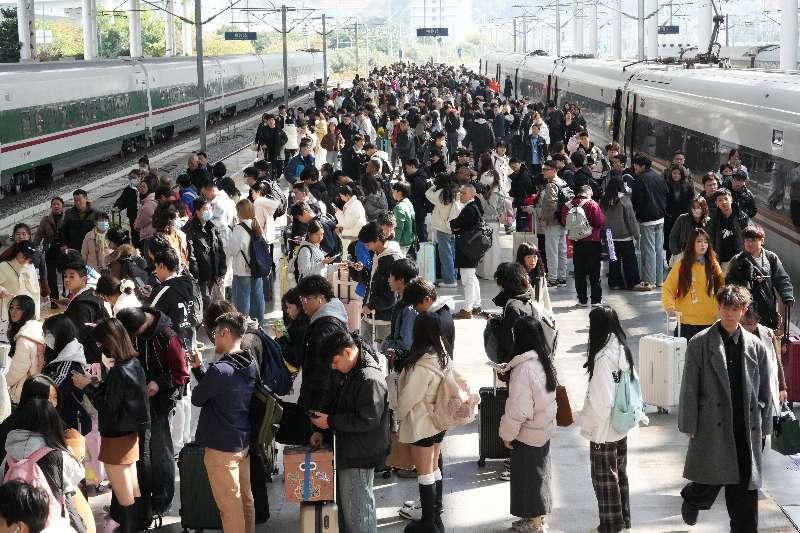 旅客在福州火车站站台有序排队候车。韩毅 摄 为全力满足旅客返程出行需求,福州火车站在热门方向、关键时段及重点区间加大列车投放力度。1月3日当天,福州站计划增开旅客列车40.5对;福州南站计划增开旅客列车25.5对。同时,针对返程客流回升态势,车站还对部分动车组列车实施重联运行,最大限度提升运力供给,为旅客返程保驾护航。