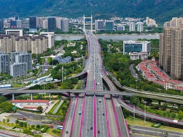 林浦互通姹紫嫣红主路 7条三角梅花带同期盛开